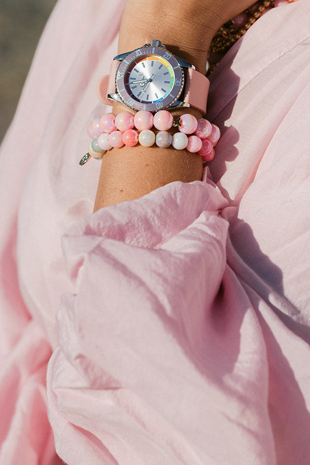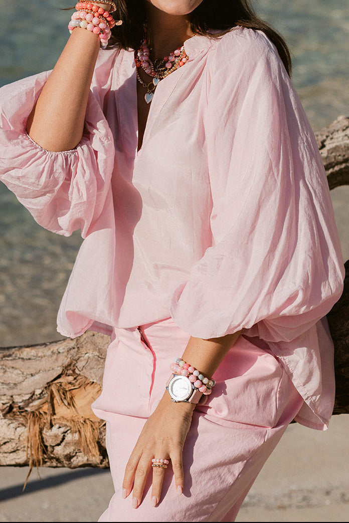 Warme Rosé- und Koralltöne erinnern an mediterrane Sonnenuntergänge, sanfte Meeresfarben und die Leichtigkeit des Frühlings und Sommers.